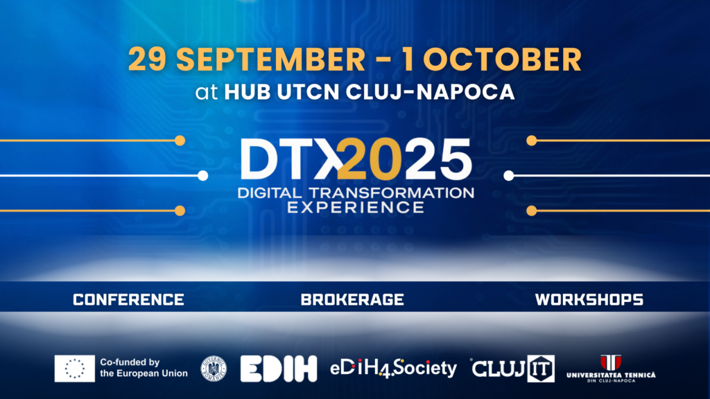 This fall, Cluj-Napoca becomes the place where digital transformation takes the spotlight. Join us at 𝐃𝐢𝐠𝐢𝐭𝐚𝐥 𝐓𝐫𝐚𝐧𝐬𝐟𝐨𝐫𝐦𝐚𝐭𝐢𝐨𝐧 𝐄𝐱𝐩𝐞𝐫𝐢𝐞𝐧𝐜𝐞 – 𝐃𝐓𝐗𝟐𝟎𝟐𝟓, a major event organized by Cluj IT Cluster, under the DIH4Society initiative. Over two exciting days, DTX2025 will bring together tech experts, thought leaders, decision-makers, and changemakers to explore what’s next in digital innovation. Expect […]