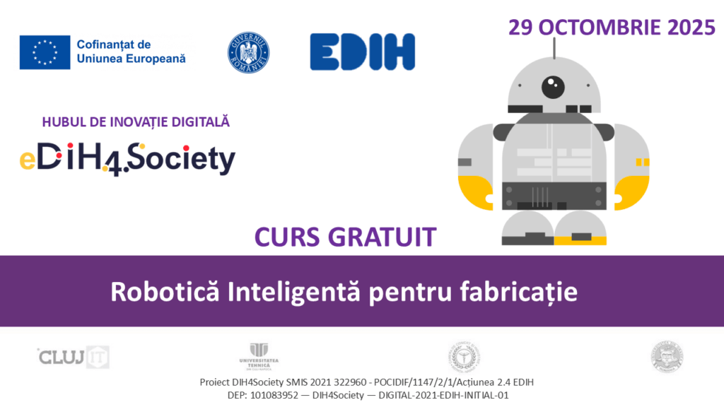 👨💻 Universitatea Tehnică din Cluj-Napoca, în cadrul proiectului DIH4Society, vă invită să participați la un curs dedicat digitalizării IMM-urilor! 📅 Perioada de desfășurare: ➡️ 29 octombrie 2025: 14:00 – 18:00 ⏱️ Durată: 4 ore 📍 Mod de desfășurare: Online, pe platforma Microsoft Teams 📄 Materiale: Suport de curs electronic & certificat de participare 👩🏫 Lectori: […]